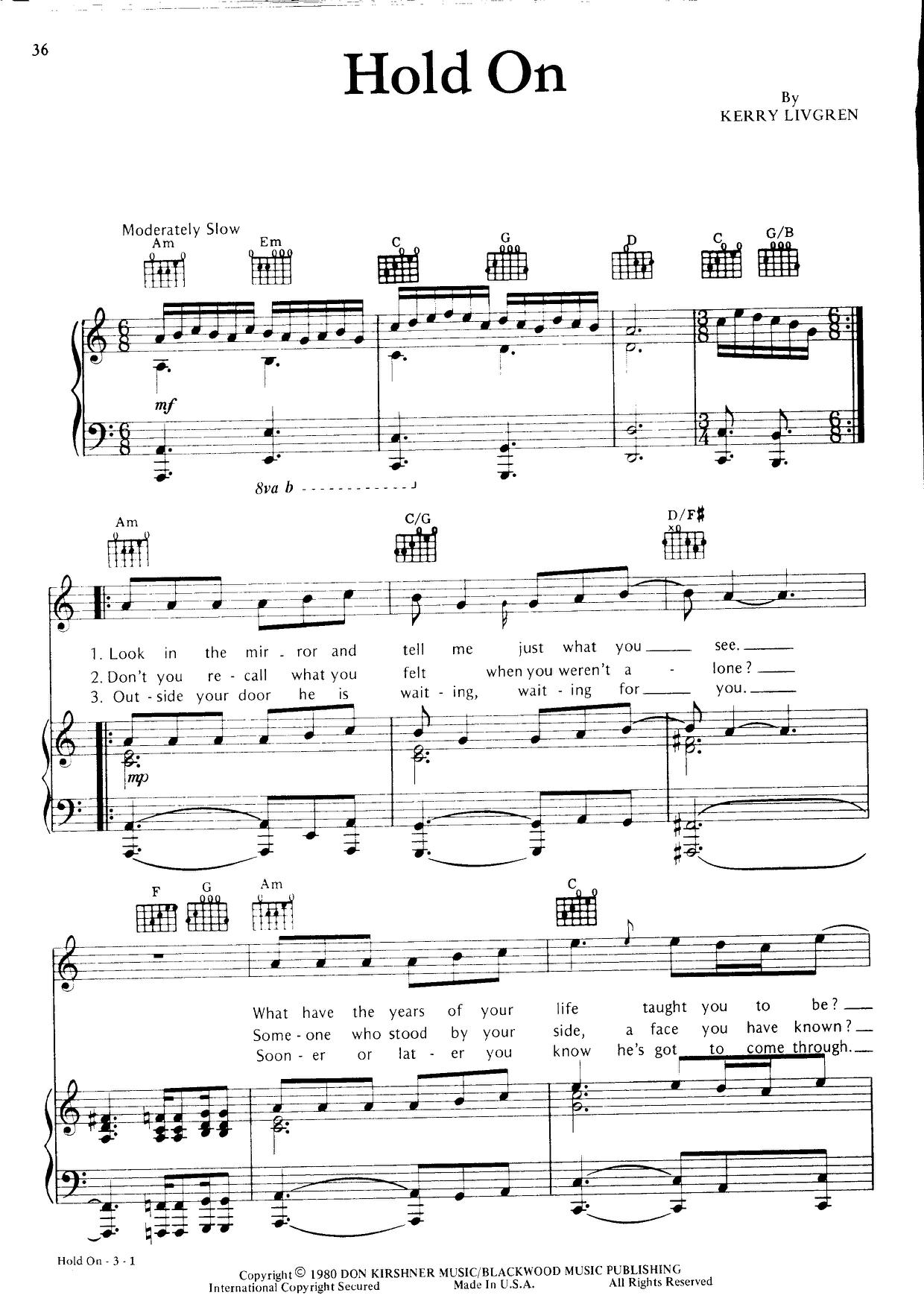 Kansas Hold On Sheet Music Pdf Free Score Download